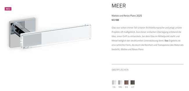 Der Griff einer Tür muss einfach sein und dem Wesentlichen entsprechen. Sein Ausdruck ist offensichtlich, auf den ersten Blick verständlich.