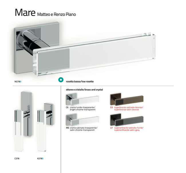 Chrom poliert CR / matt verchromt CO / SuperInox satiniert IS / SuperBronze DS / SuperAnthrazit US